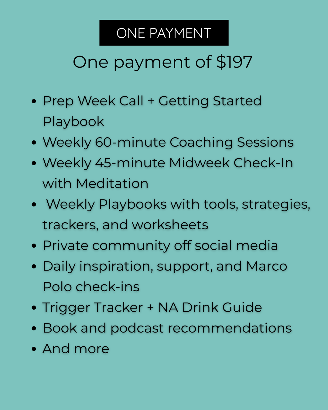 If you need additional payment plan options, please reach out. I never want cost to be a barrier to you living your best life alcohol free.